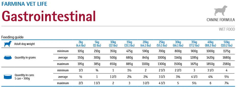 Farmina Vet Life Gastrointestinal est un régime complet pour chiens adultes conçu pour contrer la malabsorption intestinale aiguë, compenser une mauvaise digestion et une insuffisance pancréatique exocrine. Farmina Vet Life Gastrointestinal est un aliment indiqué pour le rétablissement des chiens qui ont subi une intervention chirurgicale des organes digestifs.