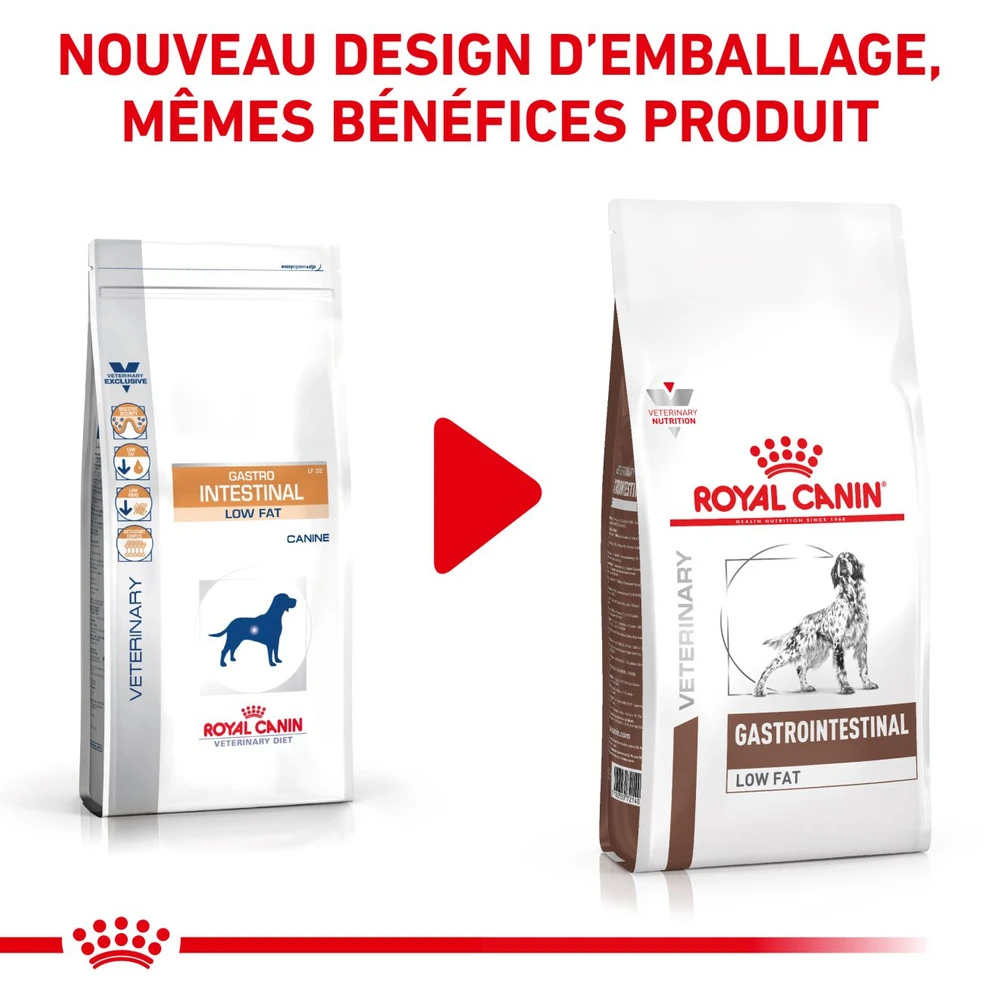 CANIN® GASTROINTESTINAL LOW FAT sec est un aliment diététique complet pour chiens, destiné à favoriser la régulation du métabolisme des lipides en cas d’hyperlipidémie. Cet aliment présente une faible teneur en matières grasses et une teneur élevée en acides gras essentiels. Recommandations : Avant utilisation ou prolongation de la durée d’utilisation, il est recommandé de demander l’avis d’un vétérinaire. Utiliser au départ GASTROINTESTINAL LOW FAT sec pour une durée de deux mois en cas d’hyperlipidémie.