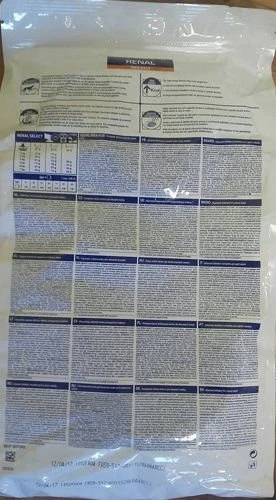 RENAL SELECT sec est également indiqué pour la réduction de la formation des calculs d’oxalate, en raison de sa faible teneur en calcium et vitamine D, et de ses propriétés d’alcalinisation de l’urine. RECOMMANDATIONS : Avant utilisation ou prolongation de la durée d’utilisation, il est recommandé de demander l’avis d’un vétérinaire. Utiliser au départ RENAL SELECT sec pour une durée allant jusqu’à 6 mois en cas d’insuffisance rénale chronique et réduction de la formation des calculs d’oxalate.