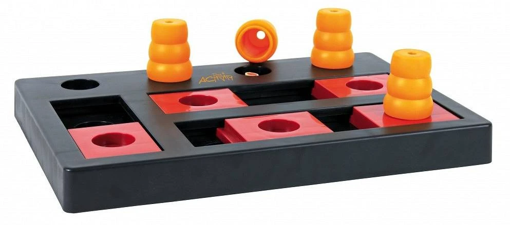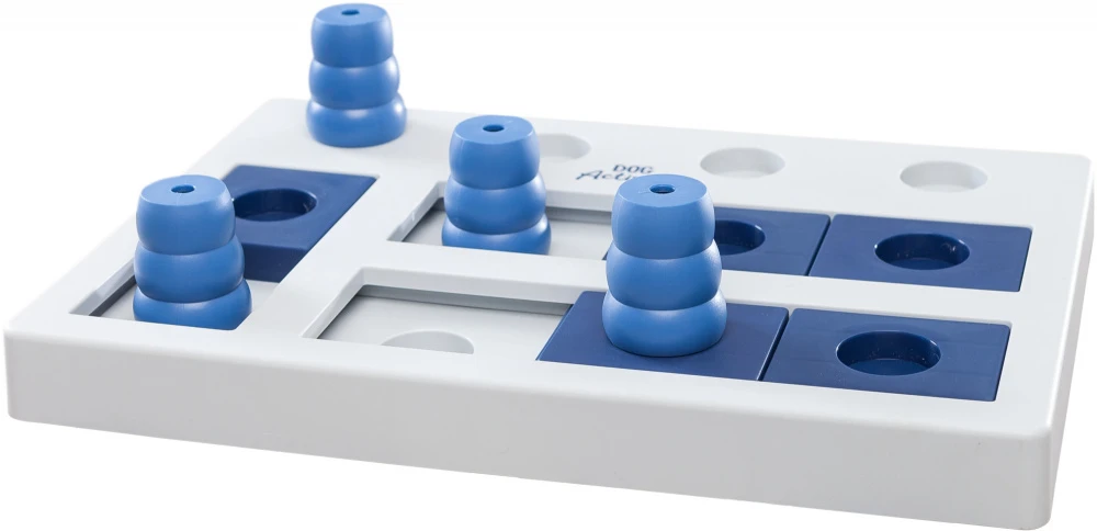 Le jeu d’Ă©checs consiste en un « plateau » avec de petites cavitĂ©s et des pions en plastique. Vous y cachez de petites friandises que votre chien essaie de sentir. AprĂšs quelques essais, votre animal apprendra Ă ramasser les pions et Ă ouvrir les tiroirs avec son museau ou sa patte pour obtenir son prix. Les Ă©checs sont un jeu stimulant pour les chiens de tous Ăąges. Il s’agit de l’Ă©tape suivante d’un jeu de stratĂ©gie et devrait ĂȘtre utilisĂ© aprĂšs l’entraĂźnement avec le jeu « Solitaire ». Il est protĂ©gĂ© contre le glissement par des pieds en caoutchouc.